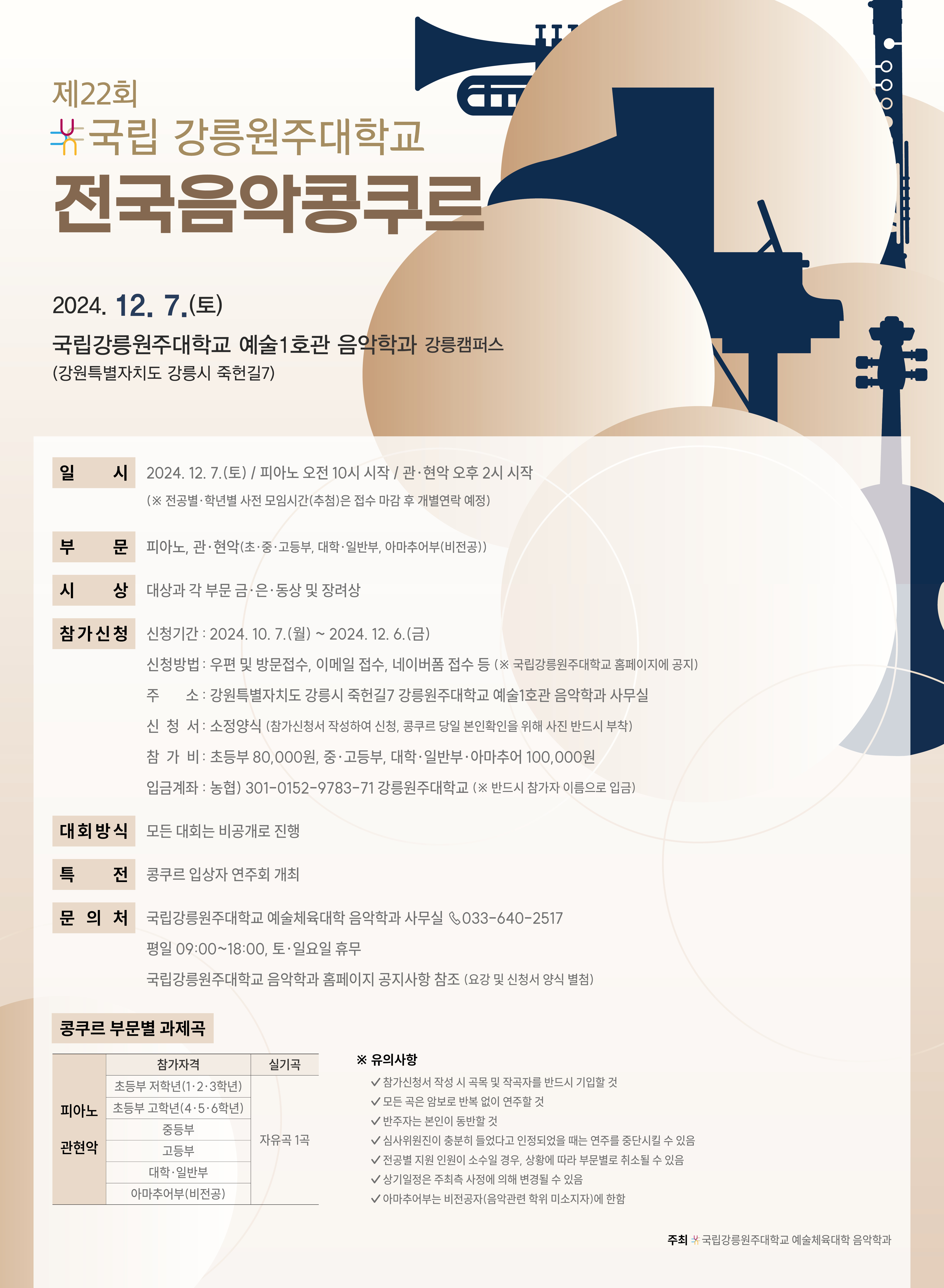 제22회 국립강릉원주대학교 전국음악콩쿠르 개최 안내