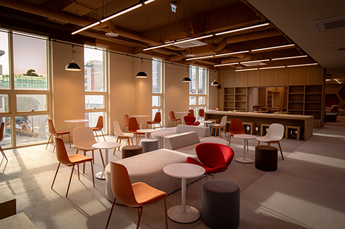 특히 학생복지관은 재학생들이 가장 자주 이용하는 공간 중 하나로, 휴식과 학습, 소통이 자연스럽게 이루어지는 장소다. 이에 따라 기존 공간의 구조와 분위기를 전반적으로 개선해 한층 밝고 안정감 있는 환경을 마련했으며, 학생들이 머무는 시간 동안 심리적 안정과 활력을 느낄 수 있도록 세심하게 구성했다.